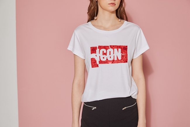3D精緻手工鑲飾造型T恤上衣-沁白