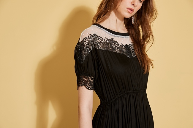 微性感透視荷葉拼接禮服洋裝-雅緻黑