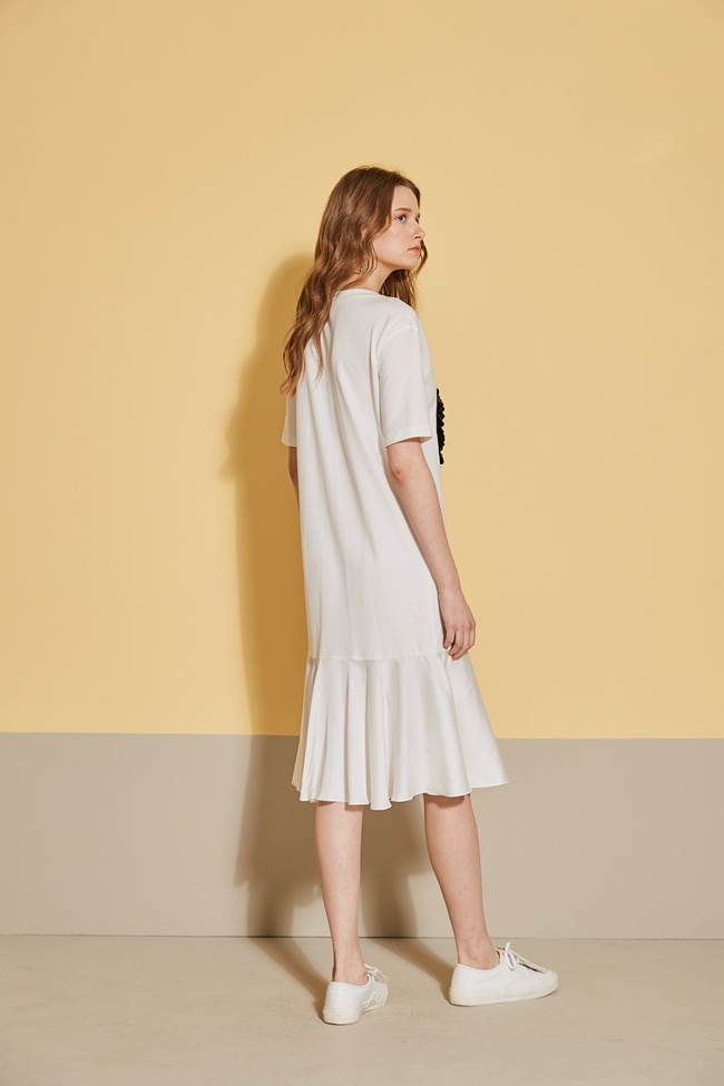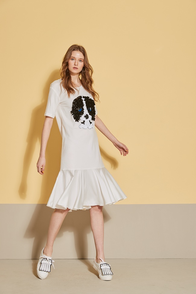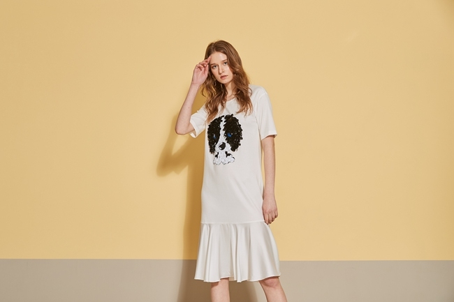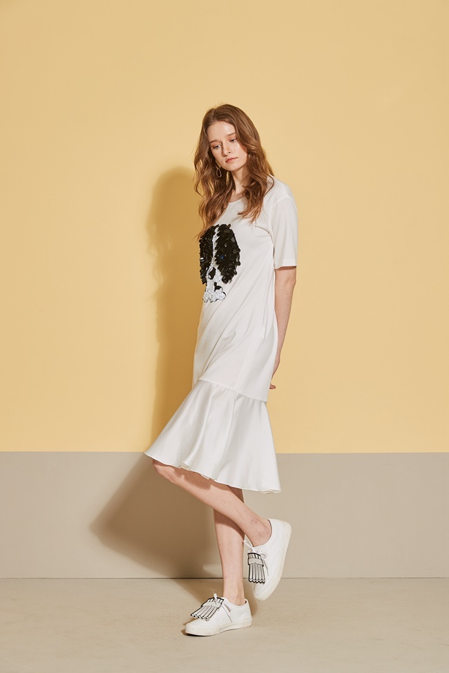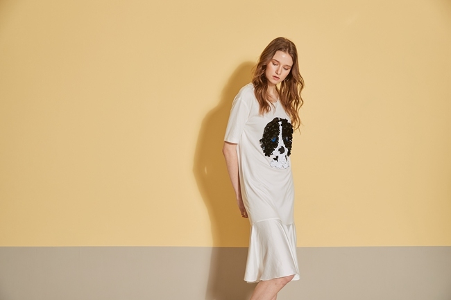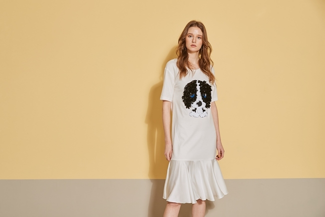 時尚3D立體狗鑲飾拼接長版魚尾洋裝-珍珠白