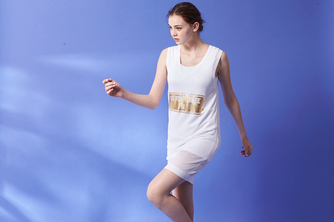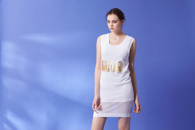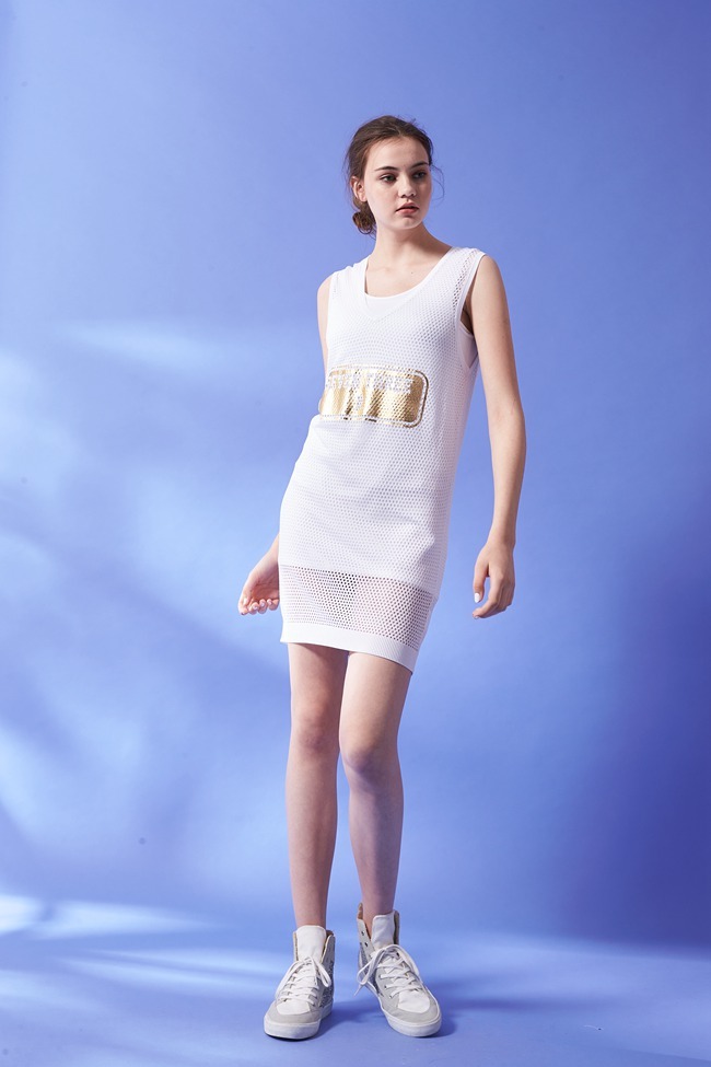 時尚V領字母燙金洞洞設計無袖上衣洋裝(兩穿)-白