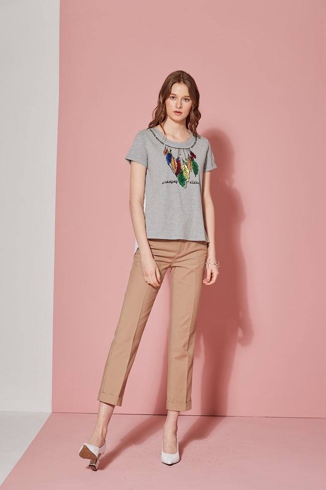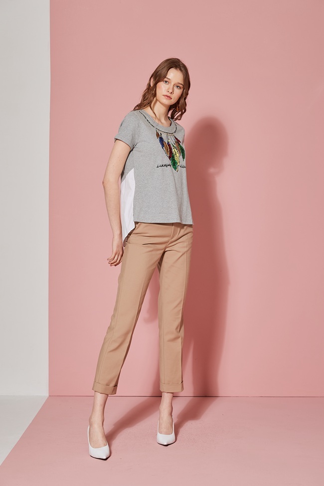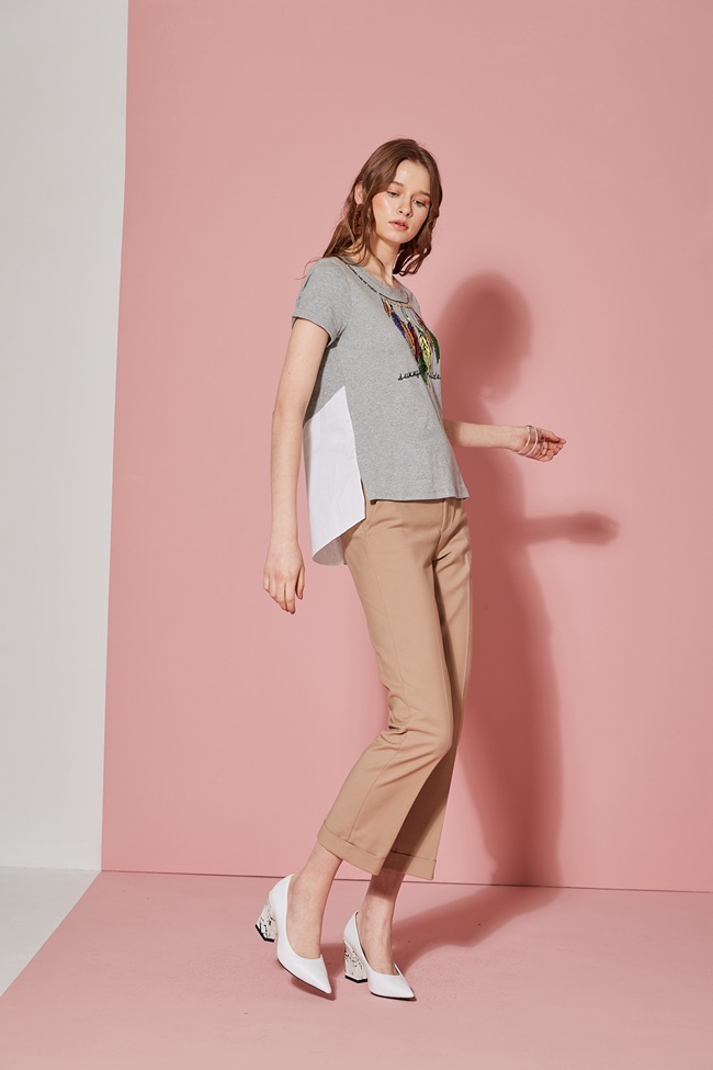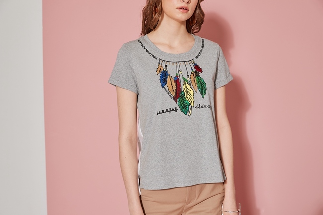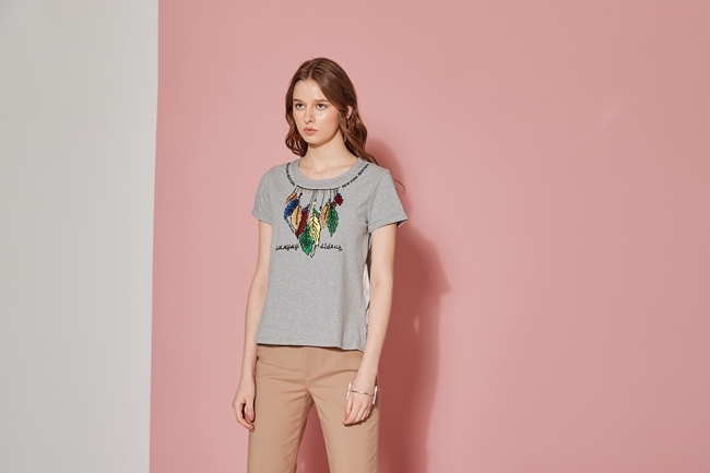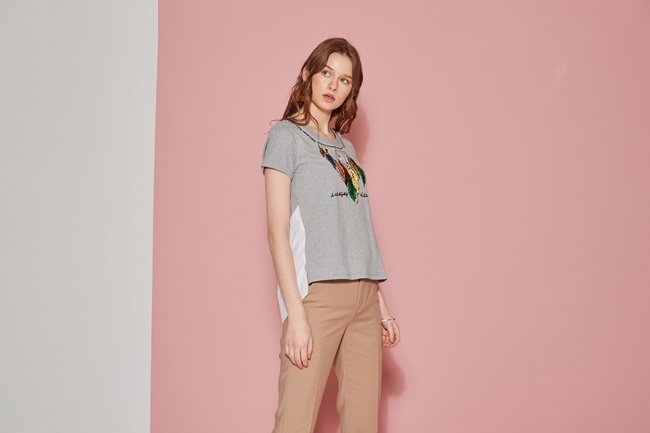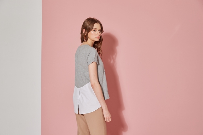時尚亮片鑲飾拼接前短後長造型上衣-冷灰