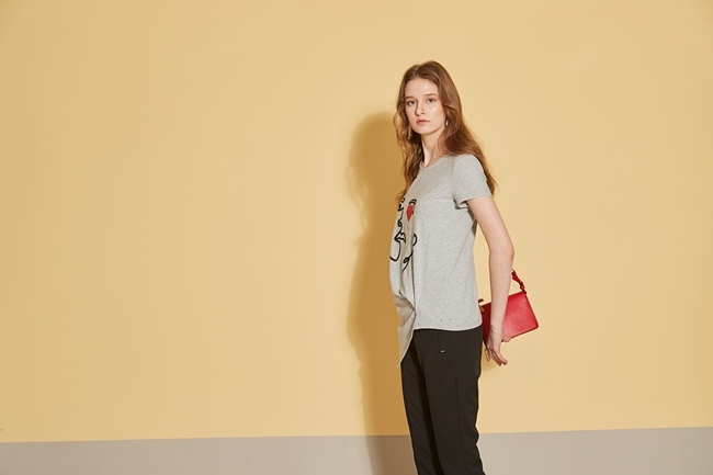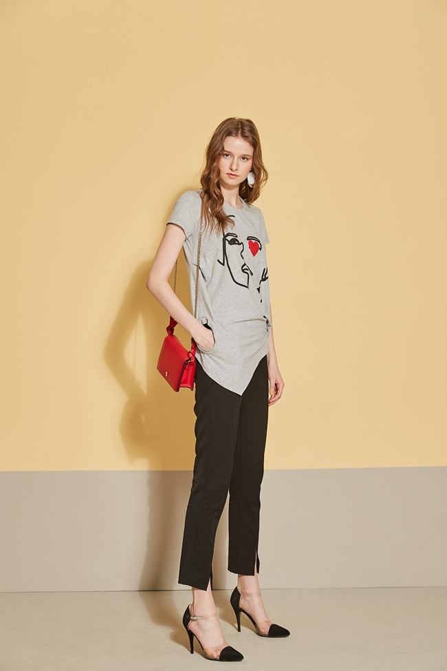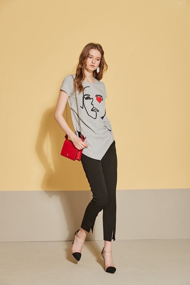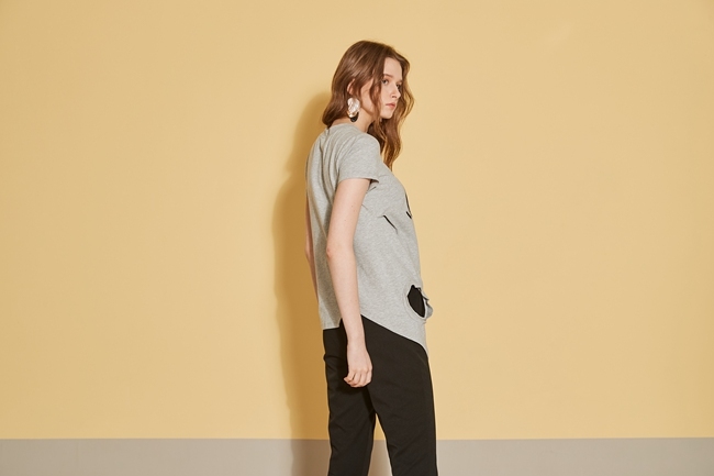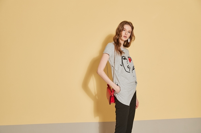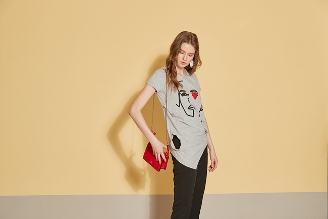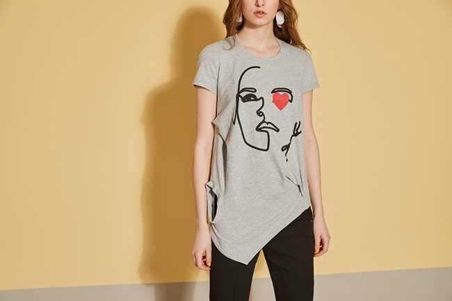 時尚人像印花不規則設計造型上衣-丹寧灰