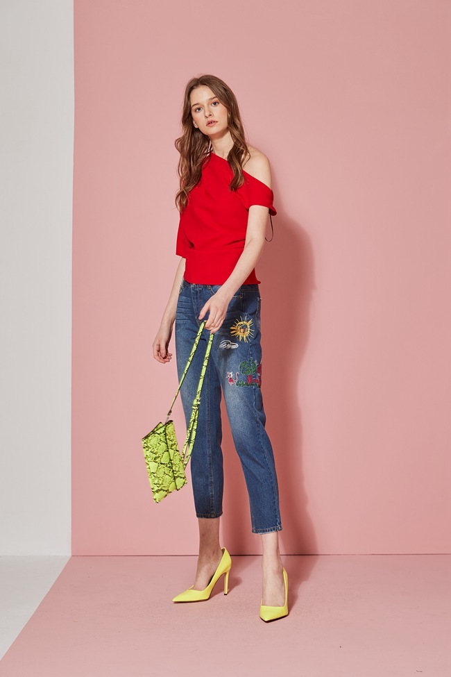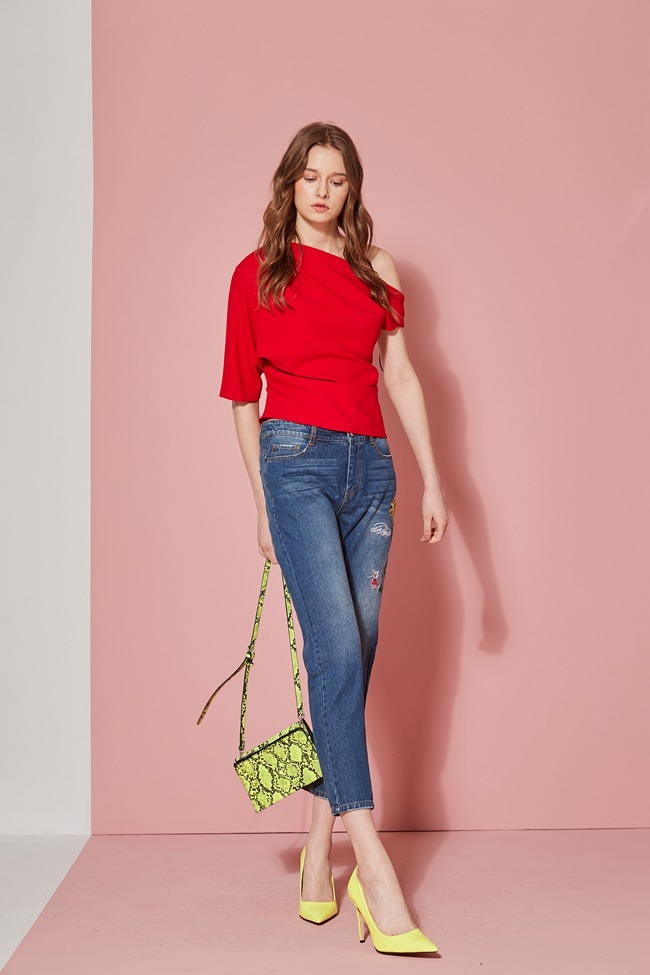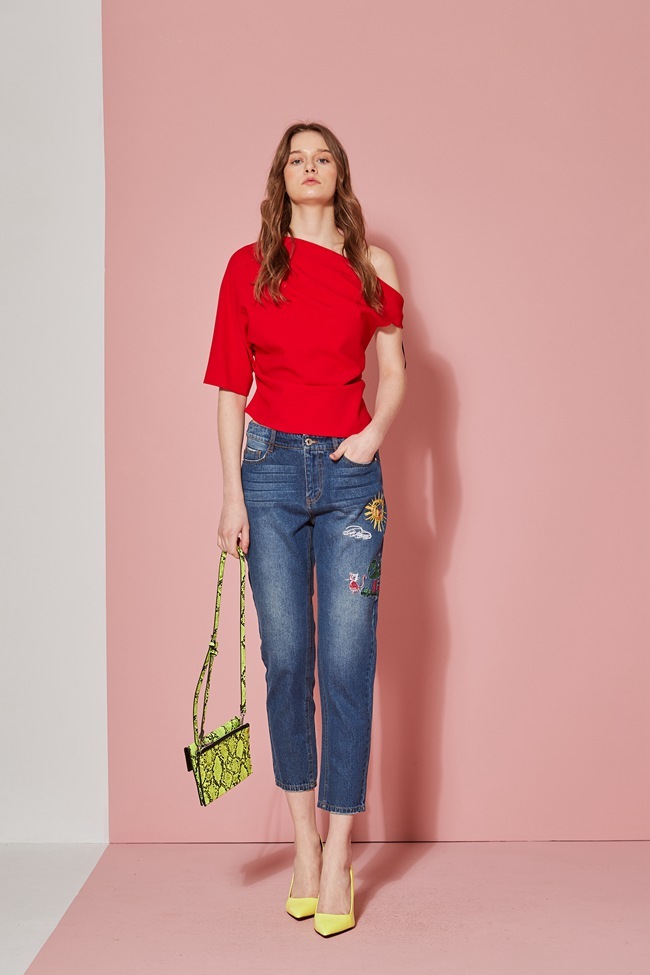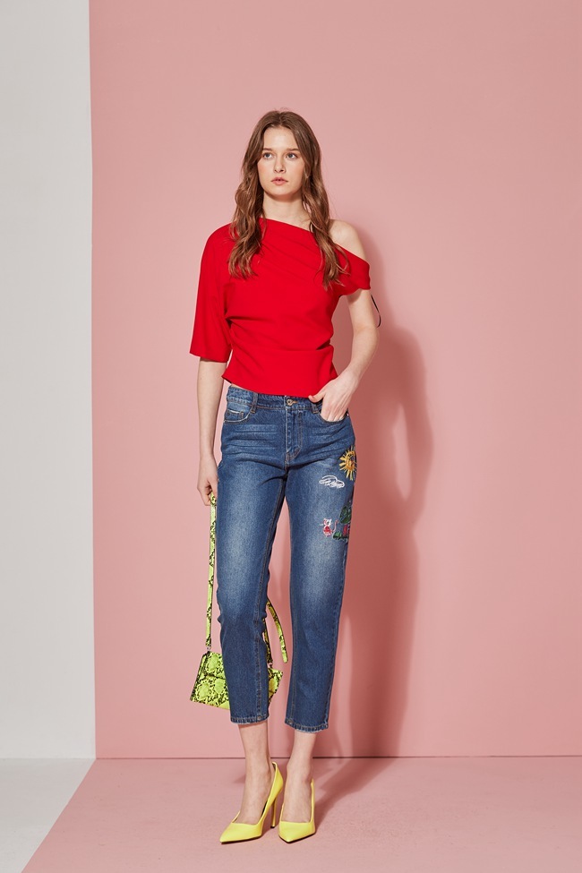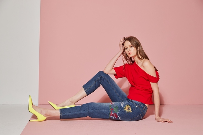時尚刺繡100%精緻高磅棉刷洗牛仔褲-單寧藍
