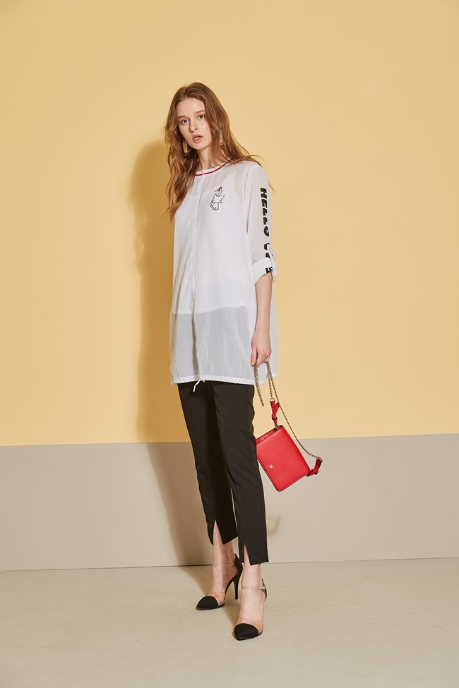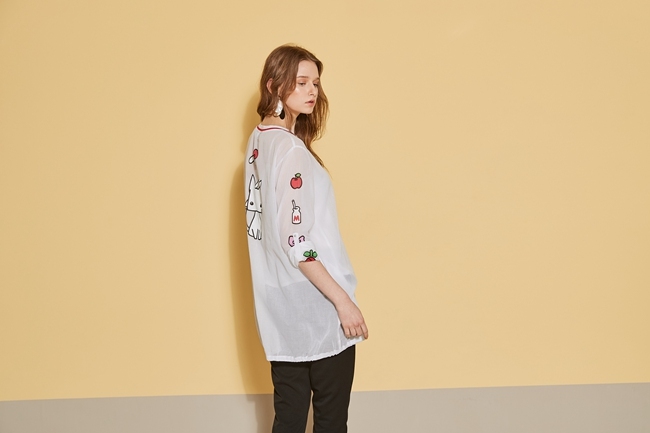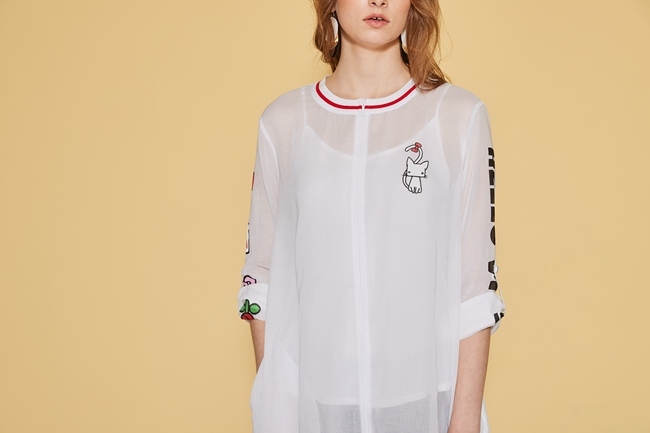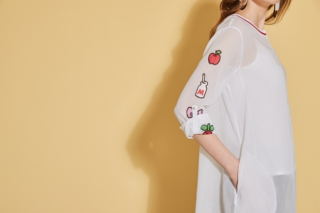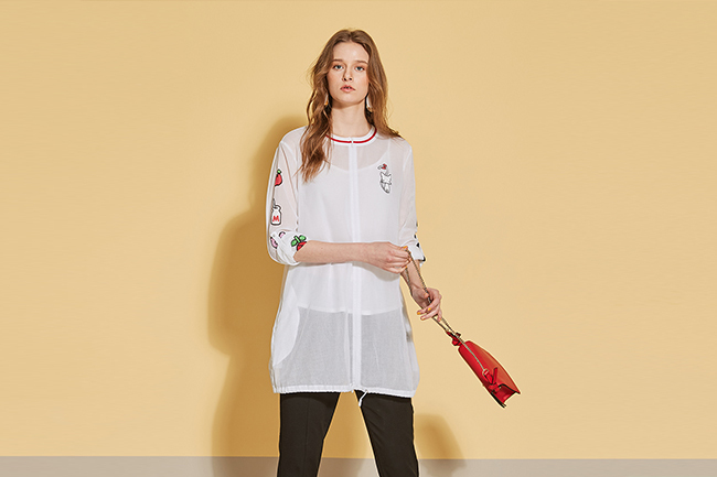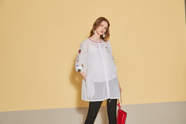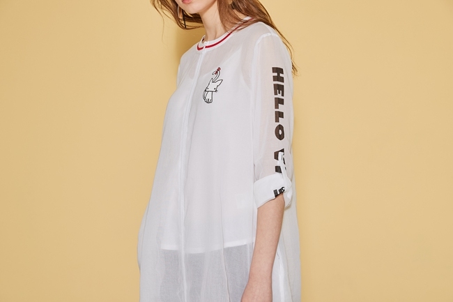 時尚印花反摺袖造型長版上衣外套(兩穿)-微透白