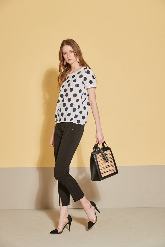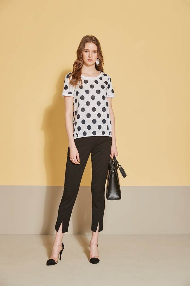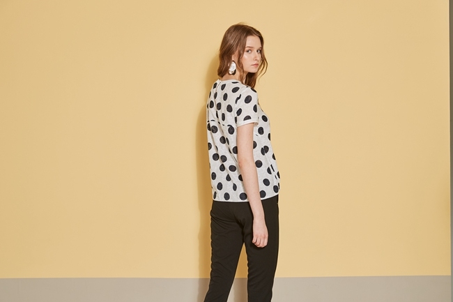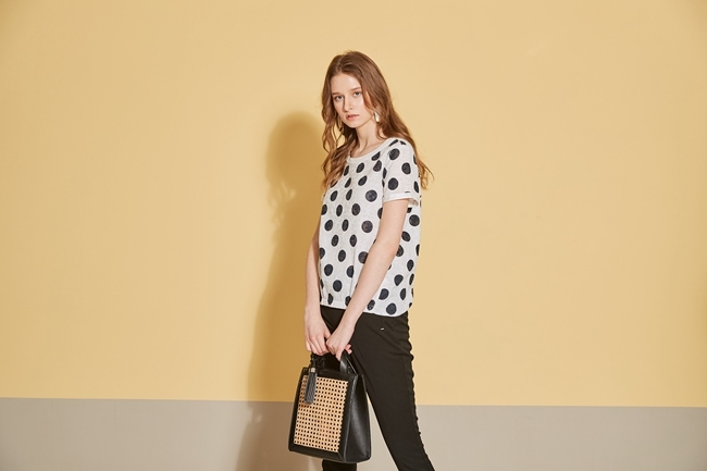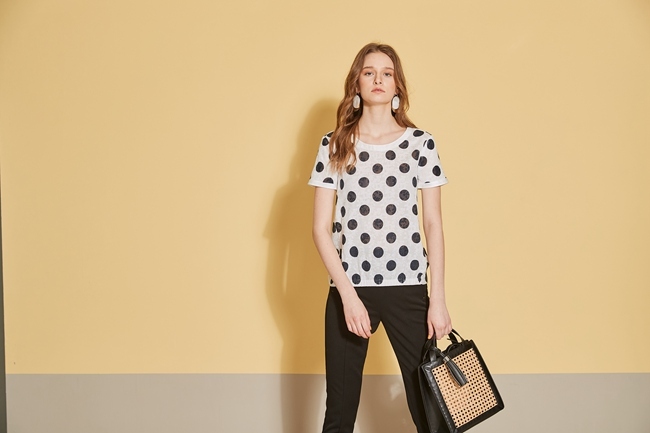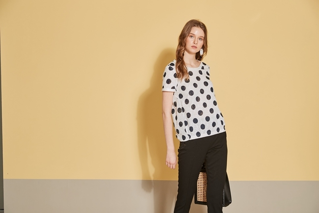 時尚圓點印花立體提花織蚊造型上衣-沁白