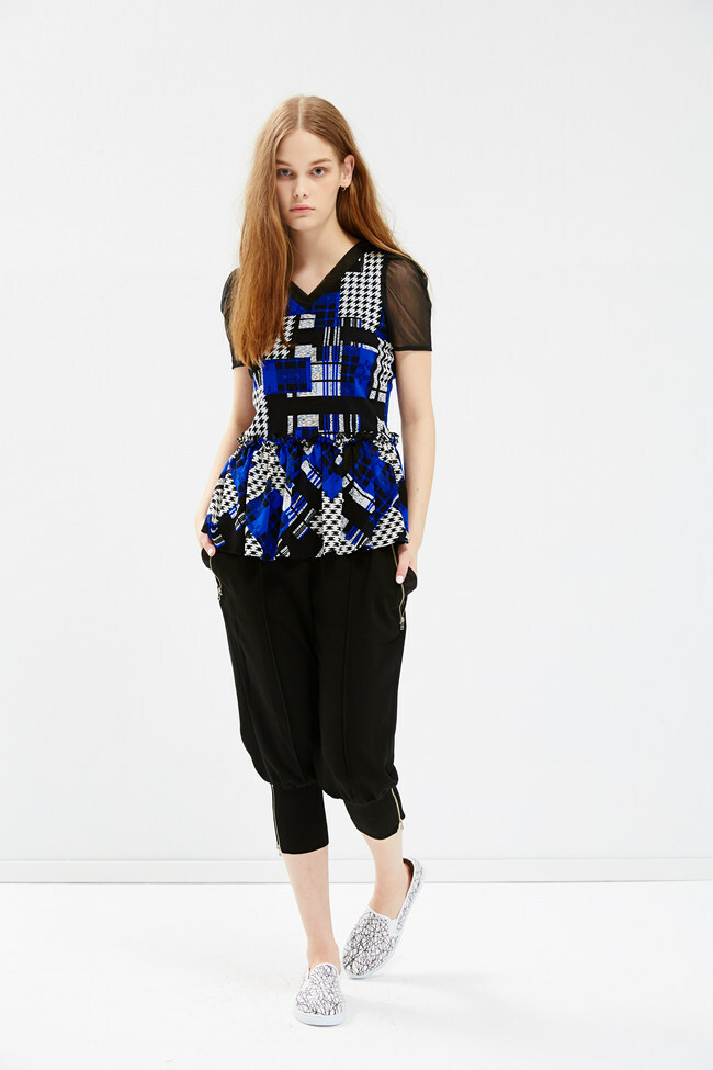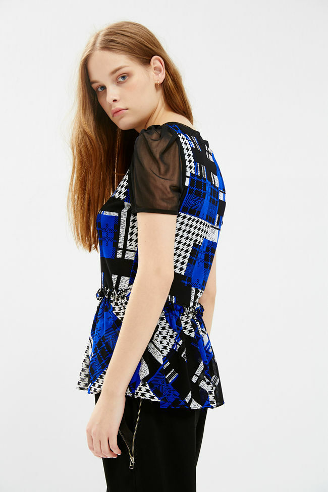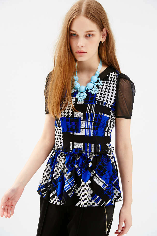 格紋千鳥傘襬造型上衣