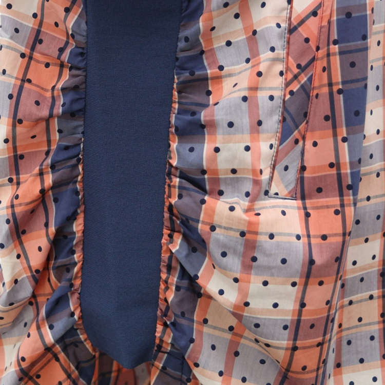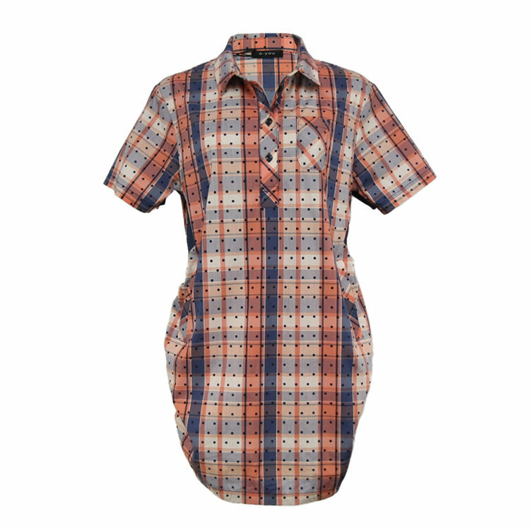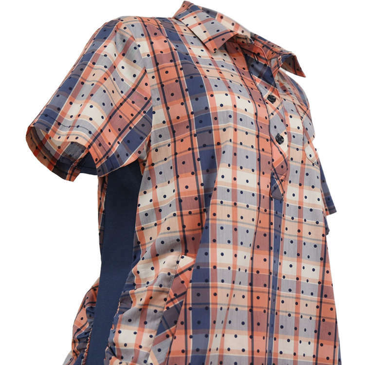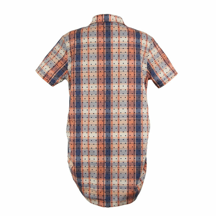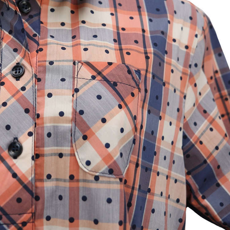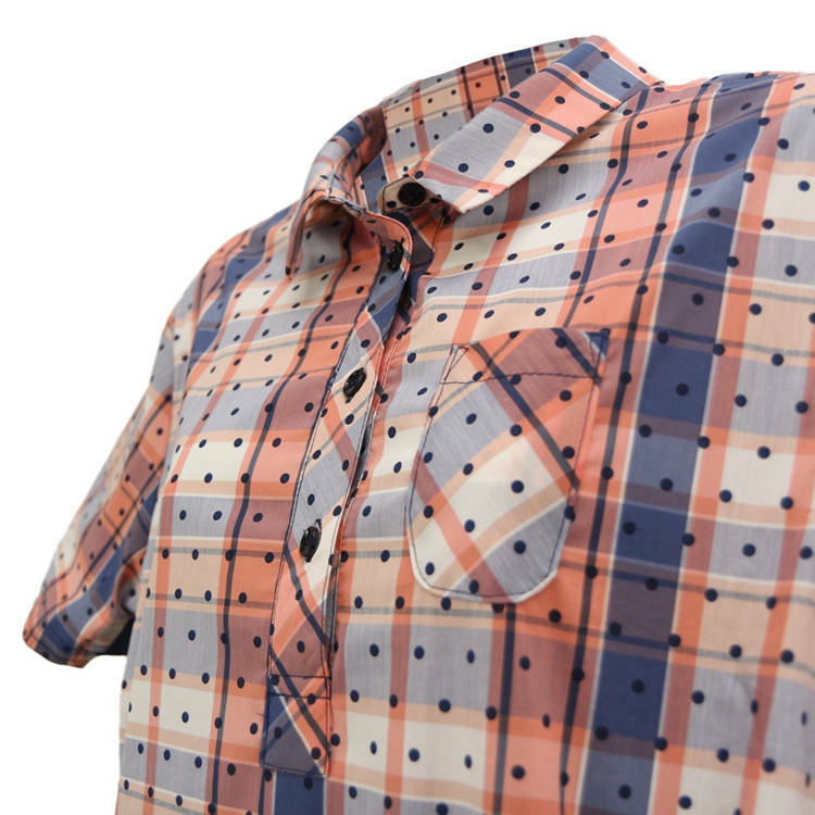 法國原裝進口點點格紋立領短袖襯衫-鎘橘黃