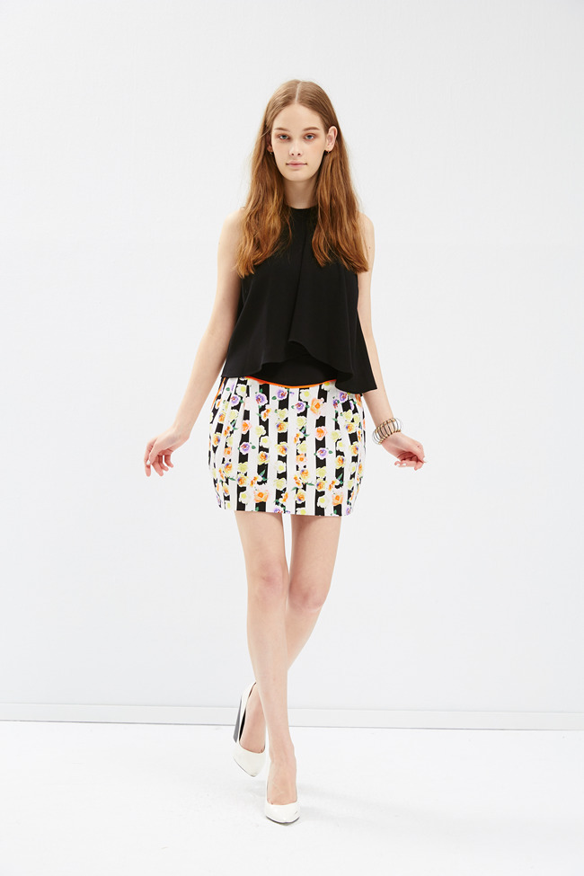 玫瑰直條紋印花造型短裙
