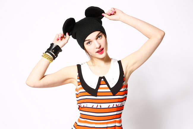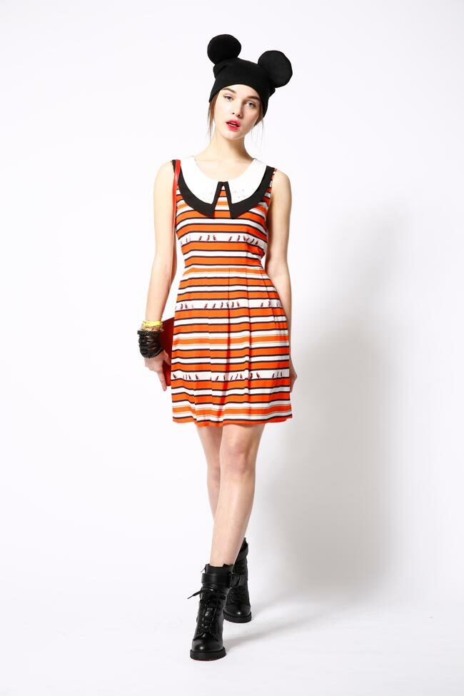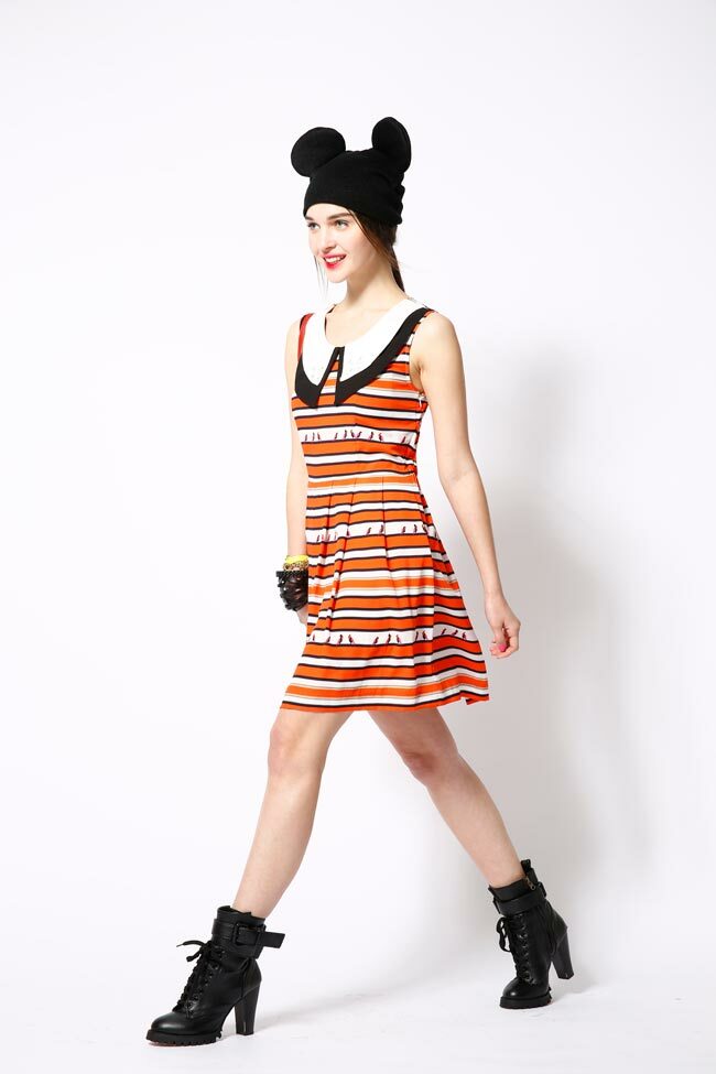 立體釘珠條紋撞色造型洋裝
