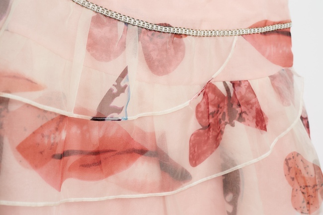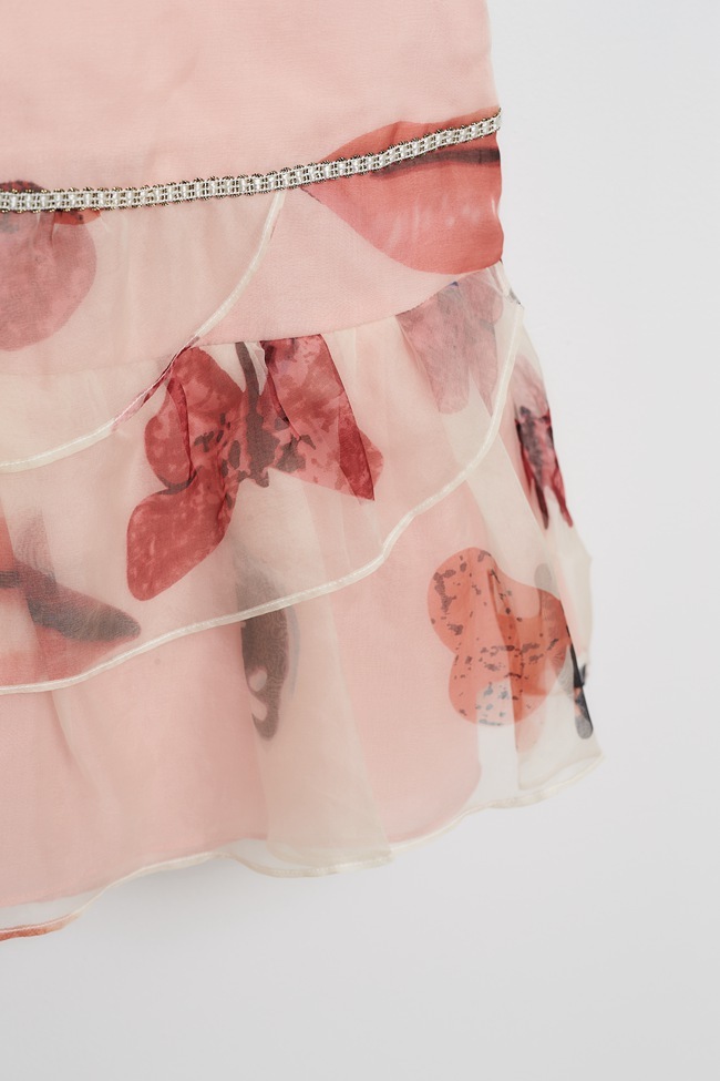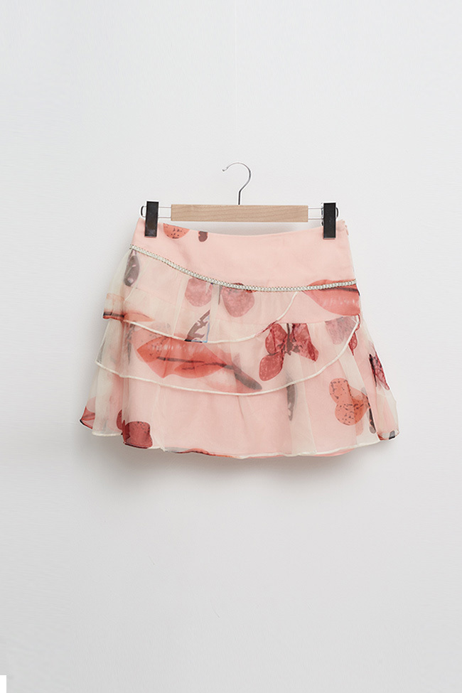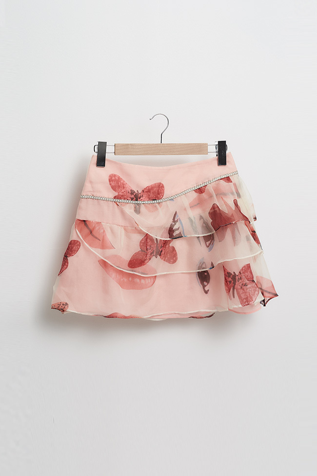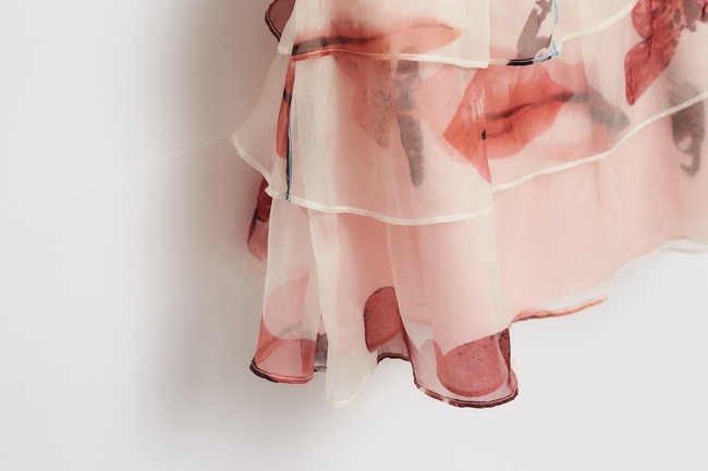 粉嫩印花蛋糕波浪紡紗造型短裙