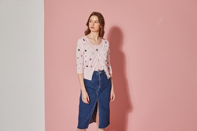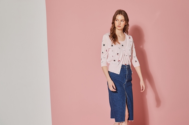 精緻3D刺繡造型針織罩衫外套-櫻花粉