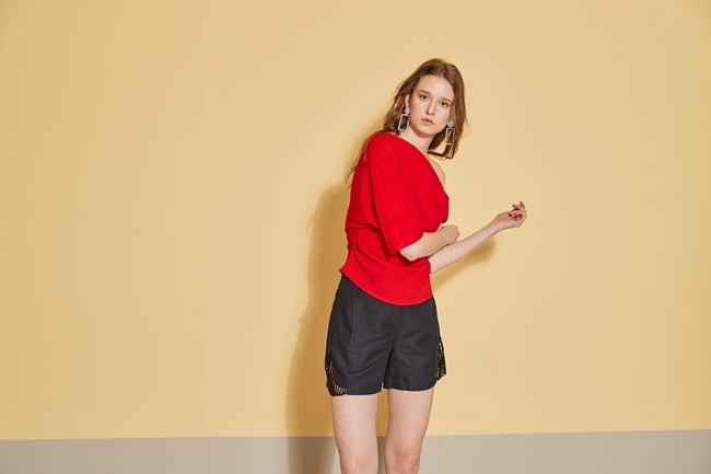 精緻3D刺繡雕花鏤空透視造型短褲-藏藍