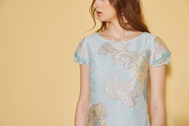 精緻進口3D金線紗提花禮服洋裝-水晶藍
