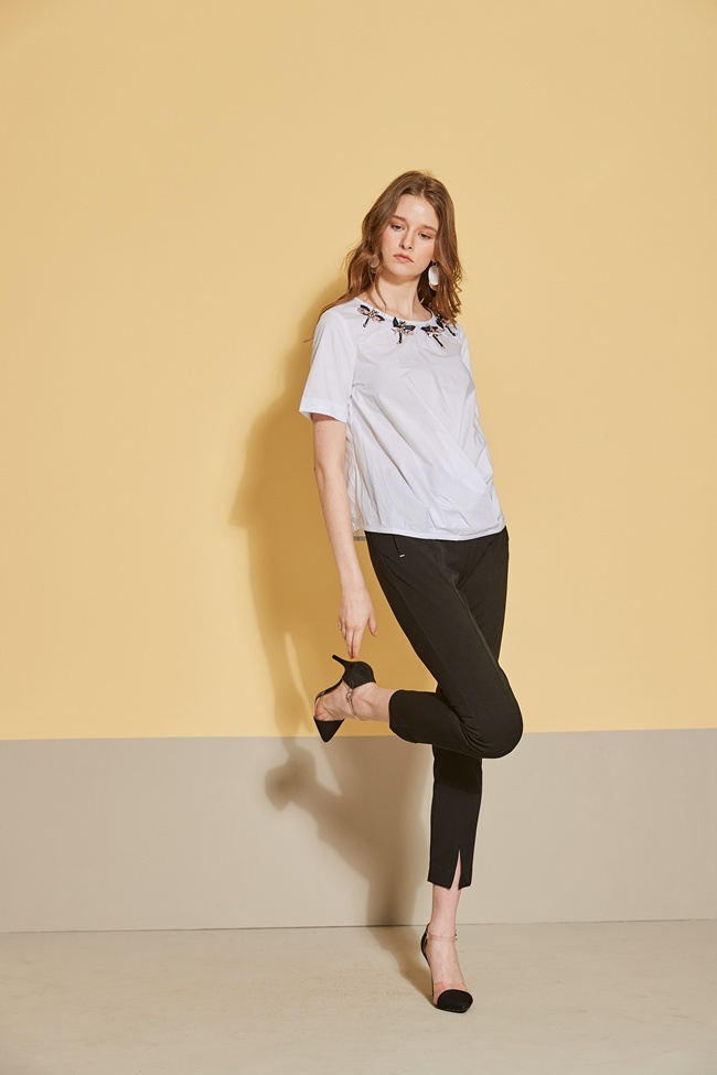 精緻重手工3D鑲飾立體剪裁造型上衣-沁白